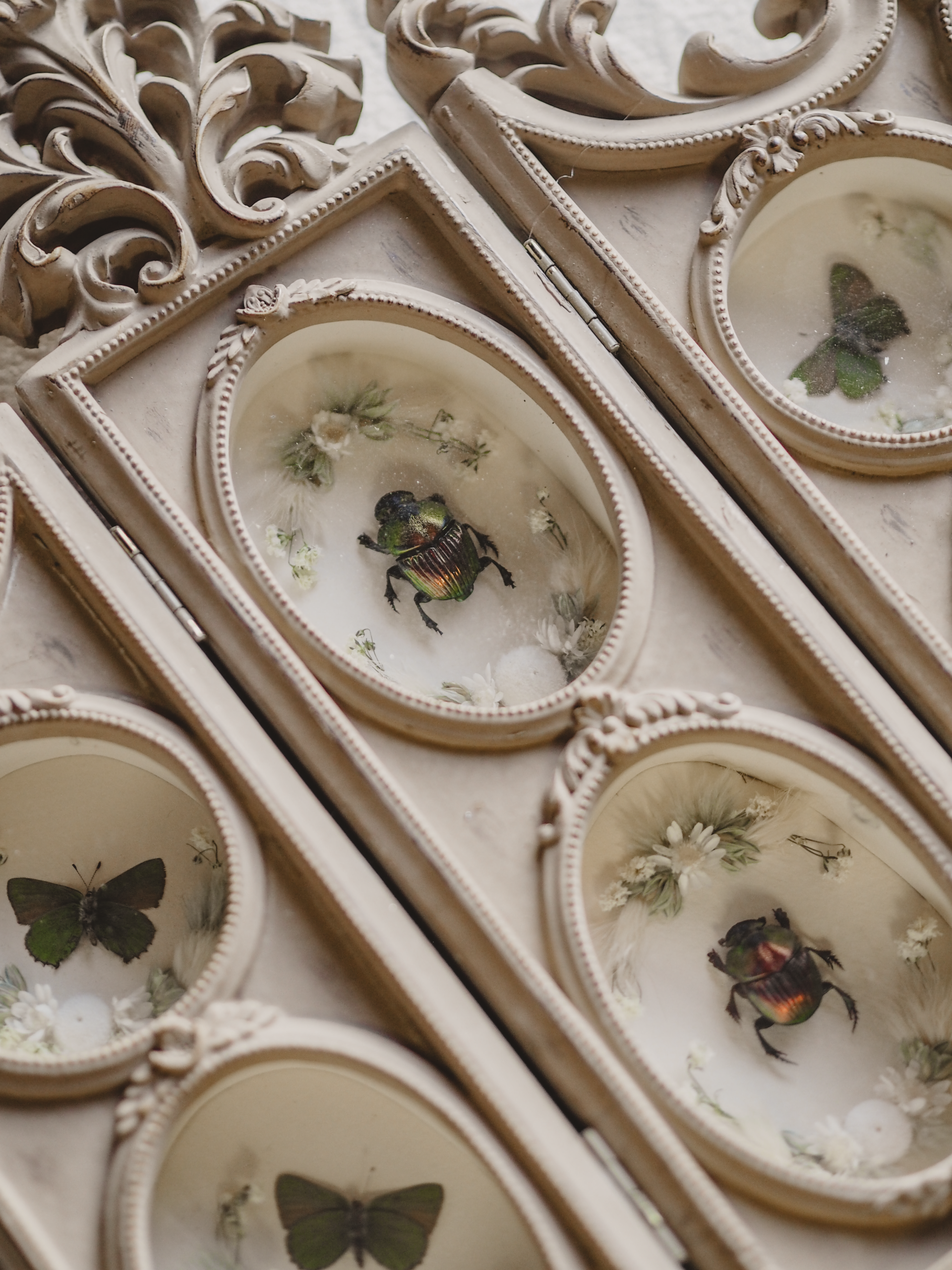 ✽ Four little green butterflies & 2 green/iridescent beetles